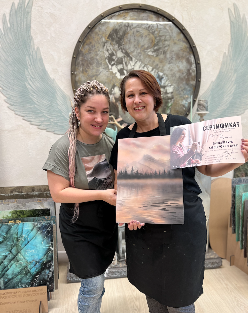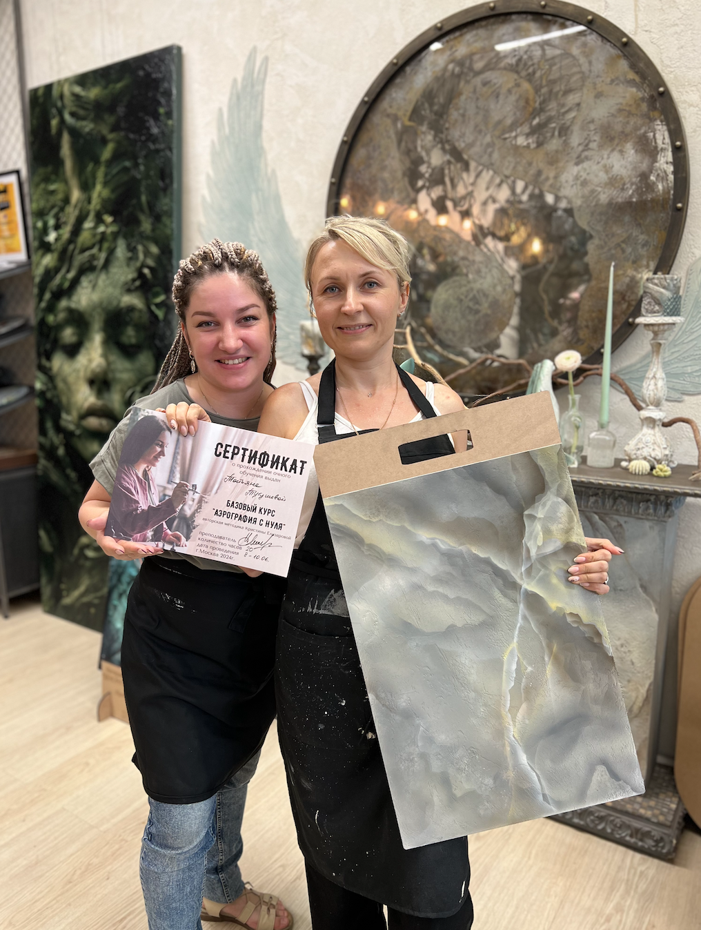 - Сертификация и поддержка. По завершении курса вы получите именной сертификат, подтверждающий ваши навыки аэрографии. Кроме того, мы оказываем поддержку наших выпускников, помогая им продвигаться в мире искусства и находить заказчиков для своих работ.