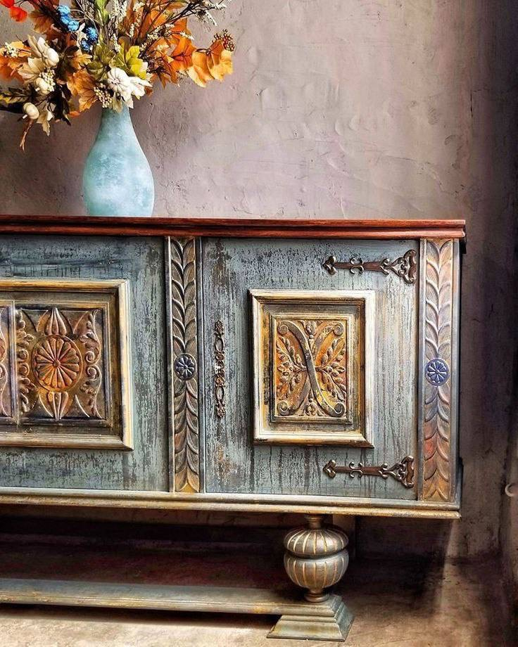 - Техника обшарпе. Обшарпе — это техника, при которой поверхностные слои краски стираются или замазываются, чтобы создать вид состаренной мебели. Это придает мебели винтажный и старинный вид.
