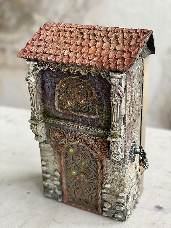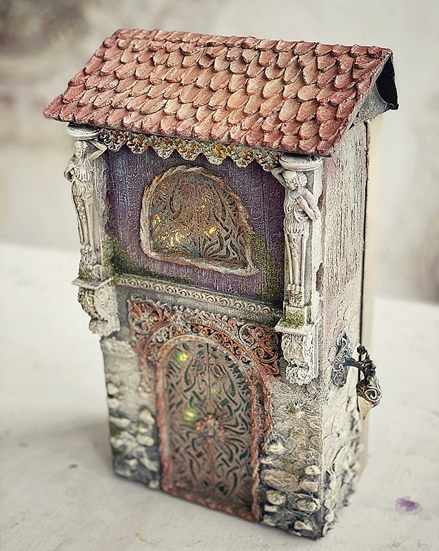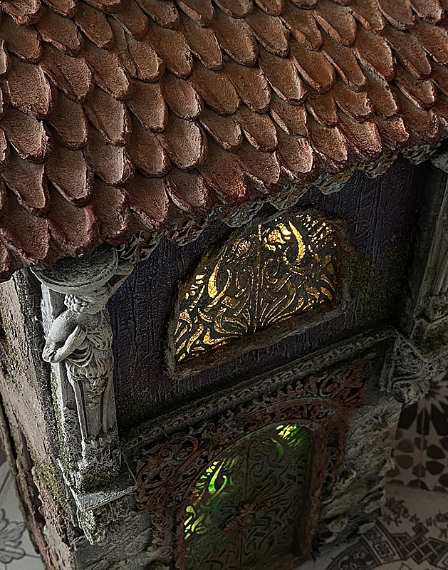 - Витражные окошечки с подсветкой. Вы научитесь создавать витражные окошечки на поверхности домиков с эффектной подсветкой. Это добавит им атмосферности и загадочности.
