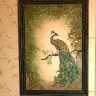 При желании можно нанести детальный трафарет третьим слоем и продублировать необходимые элементы более фактурно для выразительности. Посадить павлина можно на отдельный трафарет — колонну. ветку или просто создать ему достойное обрамление.