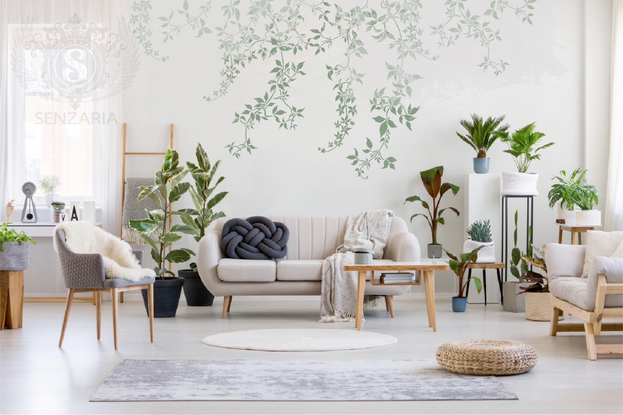 Серия растительных мотивов всегда эффектно смотрится в интерьерных работах. Эти листья для стен и мебели в нескольких размерах и вариациях.